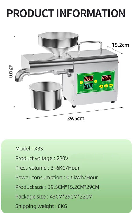- Cold and Hot Pressing Options: Dual functionality for cold-pressed or hot-pressed oil, preserving natural nutrients and flavors.
