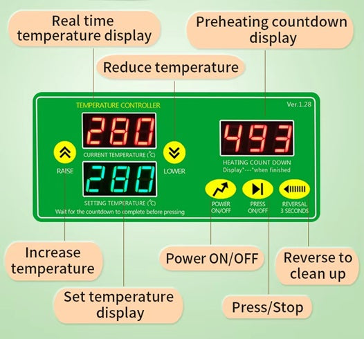 - User-Friendly Design: Simple one-touch controls with clear indicators for heating, pressing, and clearing. Easy to operate for beginners and professionals.